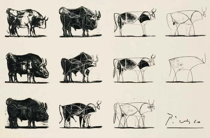 Pablo Picasso’s “The Bull” series, which illustrates his abstraction process (1945)